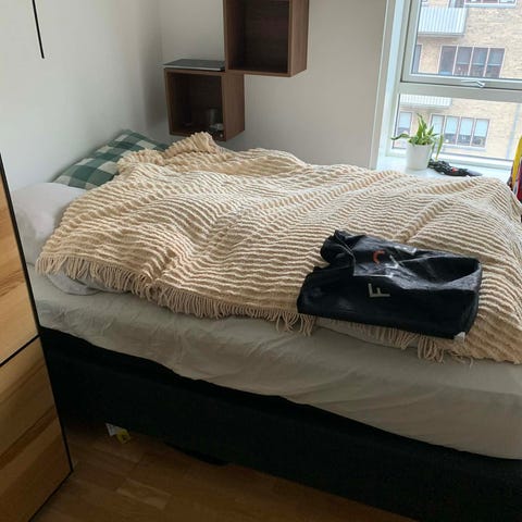 Seng med gavl. Købt i bedre nætter.