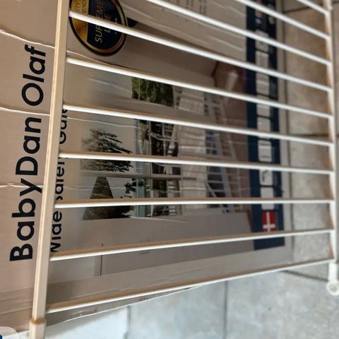 BabyDan Olaf sikkerhedsgitter i hvid. Gitteret er beregnet til montering i døråbninger eller ved trapper for at skabe en afskærmning for små børn. Det er et bredt sikkerhedsgitter med vægmontering, som kan justeres i bredden inden for det angivne spænd på emballagen. Gitteret åbnes med håndtag i toppen og kan betjenes af voksne. Velegnet til indendørs brug i hjemmet, hvor der er behov for at afskærme områder for børn.