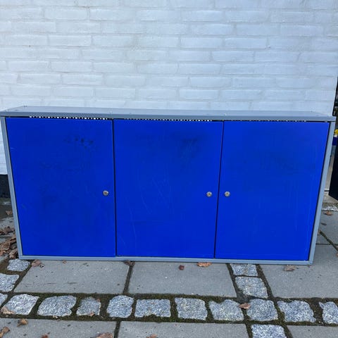 Mål: B 57 cm, H 85 cm, D 71 cm. Kugleleje på skufferne. List rust fra vinteren.