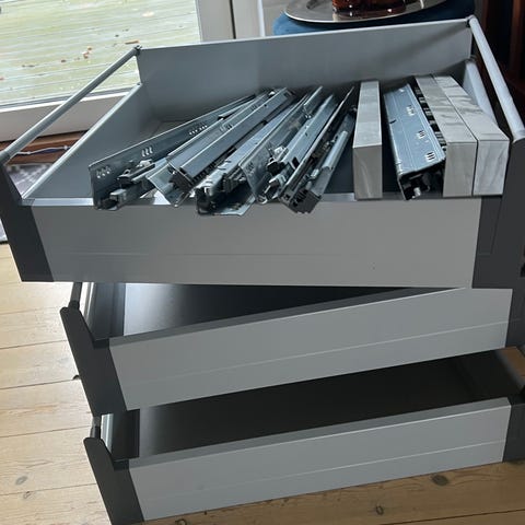 Med soft luk på skufferne og børstede stålgrå