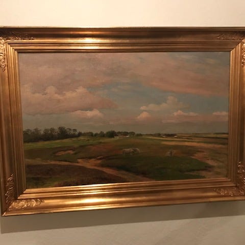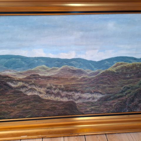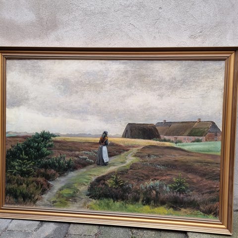 Maleri af den jydske hede. 20 x 35 cm. Overflade renset og opspændt i 2013.