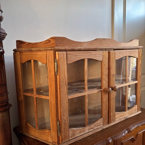 Antikt vitrineskab/Vægskab træ grøn med glaslåger