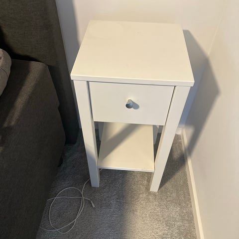 Hvidt sengebord med skuffe (2 stk)