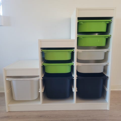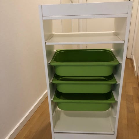 IKEA trofast reolen er i meget fin stand. Der er enkelte brugsspor i træet, som kan ses på billederne. Ellers rigtig fint.