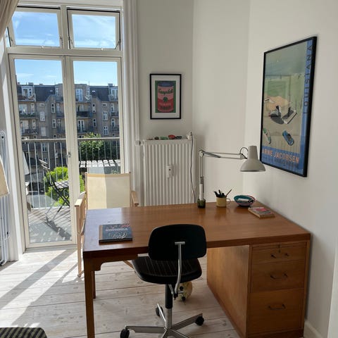Fint, funktionelt Wegner skrivebord i egetræ.