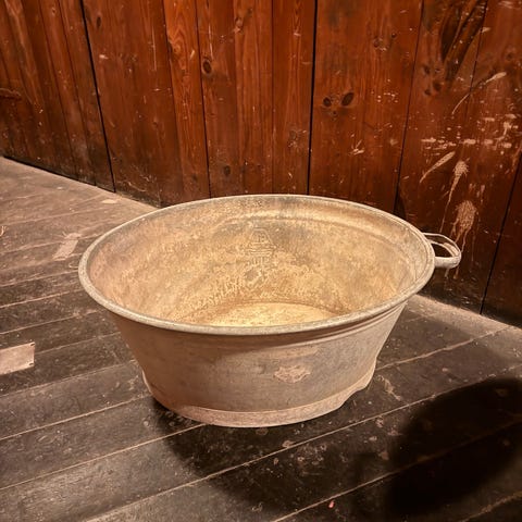 Kæmpe dekorativ antik retro zinkbalje til indretning ude eller inde.