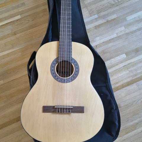 Guitaren er i god stand og fuldt funktionsdygtig, uden revner eller synlige skader på kroppen.