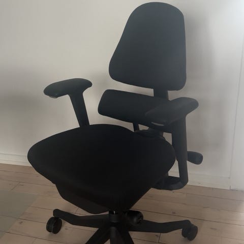 Stolen er utrolig komfortabel, solid og nem at justere. Ergonomien tilpasser sig naturligt din kropsholdning, og ryglænet kan lænes glidende og vægtresponsivt.