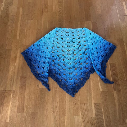 Det smukkeste håndlavet sjal. Hæklet med perler i kanten. Måler ca 186 x 85cm.