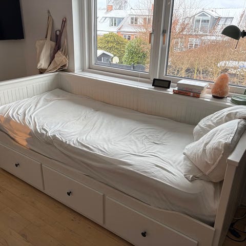 Næsten ubrugt seng da vores store datter stadig ikke sover i sin egen seng og nu får nyt mindre værelse 🫣.