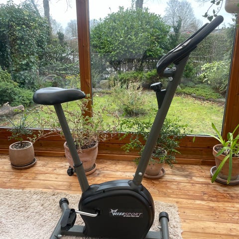 Det er en gammel motionscykel, men kan godt bruges til genoptræning. Har selv anvendt den i forbindelse med genoptræning af knæskade. Cyklen har saddel med justerbar højde. Egnet til indendørs konditionstræning i hjemmet. Kan godt trænge ril at blive smurt.