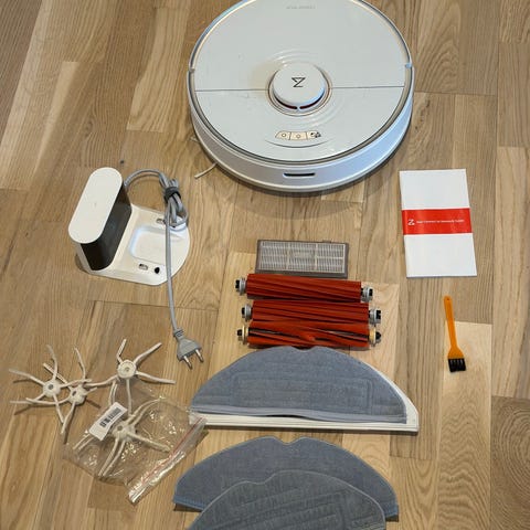 Roborock robotstøvsuger i hvid med selvtømmende station. Sættet omfatter robotstøvsuger, dockingstation med automatisk tømning af støvbeholder samt engangs-støvposer (disposable dust bag). Robotten er rund og egner sig til automatisk støvsugning af gulve i hjemmet. Selvtømmende station reducerer behovet for manuel tømning af støvbeholderen. Velegnet til daglig rengøring af hårde gulve og tæpper i private boliger. Desuden er der vand beholder til gulvvask