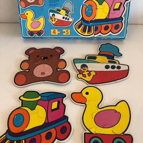 Forskellige puslespil. 2 fra 4 år, 1 fra 5 år og 1 stort puslespil til alderen 5-9 år (61x42 cm). Alle brikker er der. Sælges samlet. Fra ikke-ryger hjem. Se også mine andre annoncer med puslespil.