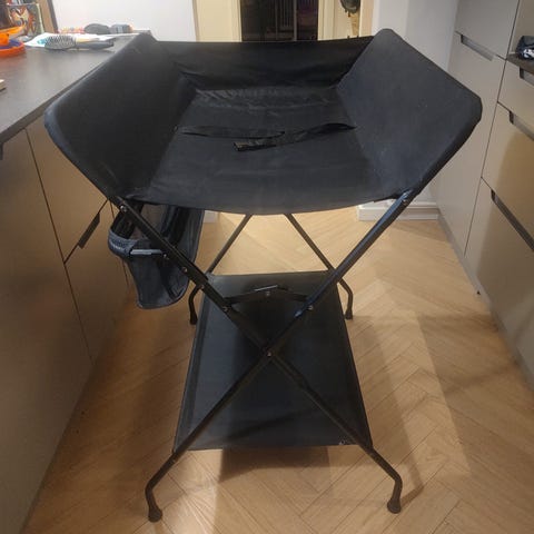 Puslebord med badekar. Praktisk og nem at folde sammen.