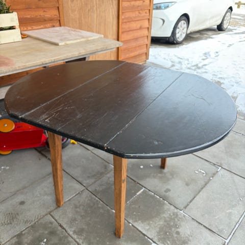 Jeg har slebet halvdelen af det, som man kan se på fotos, men kom aldrig videre. Vil blive rigtig fin efter en slibning eller en malning/oliering.