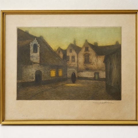 2 Litografi på papir af Jean Hardy (f.1880), Frankrig i smukke antikke guld rammer