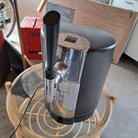 Professionelt anlæg, tappetårn i messing med 3 haner lys i topskiltene køling af øllet helt frem til hanene, virker upåklageligt har lige fået et stort service, alle slanger og fittings er nye og fadkoblingerne har fået nye pakninger, Anlægget har 2 S-koblinger og 1 A-kobling. Er afprøvet og renset, virker med garanti og det er nemt at samle. Mål på køler D 36 B 36 H 70 cm
