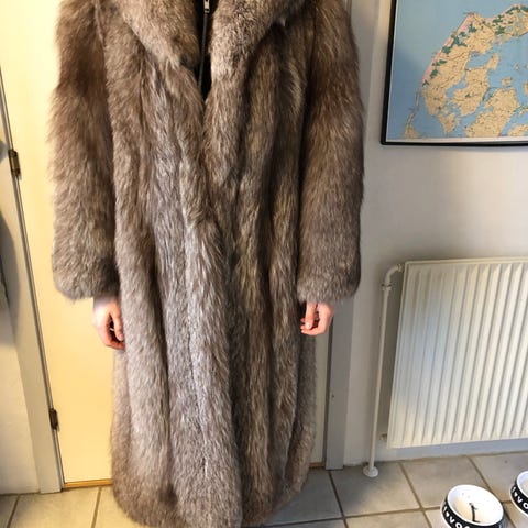 Vintage frakke i brun ulvepels til kvinder i one size. Frakken har fyldigt pelsskal og glat, ensfarvet foer. Lukning foran med hægte, som vist på billeder (virker dog ikke rigtigt- så bør skiftes- og ene hænger løst). Lange ærmer med pelskant og rummelig pasform. Velegnet som overtøj i koldere vejr, hvor der ønskes en varm og kraftig frakke i pelsmateriale.