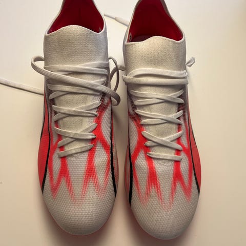 Puma Ultra fodboldstøvler i størrelse 40. 1/2 Støvlerne er designet til fodbold og har knopper til brug på græsbaner. Overdelen er i syntetisk materiale i gul/grøn farve med mørke detaljer og snørelukning for justerbar pasform.
