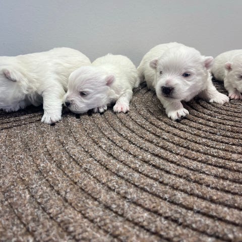Min skønne Westie har født 4 hvalpe, 2 tæver og 2 hanner.