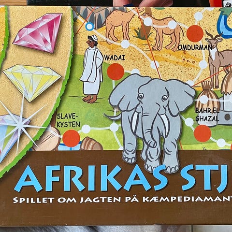 Afrikas Stjerne brætspil. Klassisk familiespil hvor spillerne rejser rundt på spillepladen for at finde den store diamant. Spillet indeholder spilleplade, spillebrikker i forskellige farver, terning, pengesedler samt brikker med diamanter og andre symboler. Egnet som underholdning for flere spillere i familien eller blandt venner.