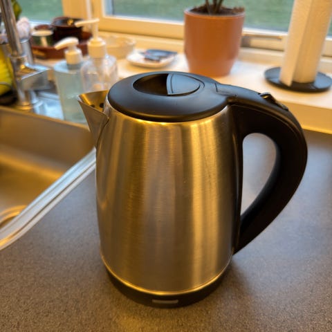 Point elkedel i hvidt design. Elkedlen har digital temperaturvisning på håndtaget og indvendig beholder i metal. Velegnet til opvarmning af vand til fx te, kaffe og madlavning i køkkenet.