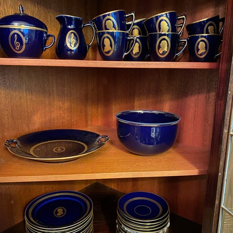 7 sæt B&G Musik kaffekopper med underkopper og kagetallerkener