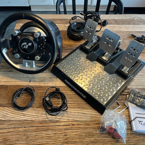Thrustmaster T300 RS GT rat og pedaler i perfekt stand. Rat, pedaler, ledninger og befæstnings-beslag (ubrugt) medfølger i org. ydre emballage. Kompatibel med PC, PS4 og PS5 for fleksibel brug. Passer sammen med Thrustmaster TH8A gearstang som også er til salg her på DBA. Se mine andre annoncer).