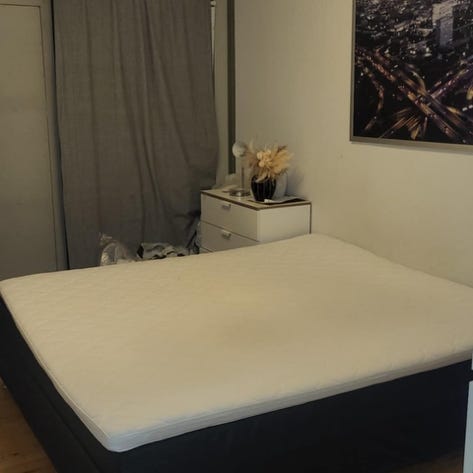 Kongeblå, kingsize seng i rigtig god stand. Topmadrassen fungerer fint, men betrækkenter blevet vasket og derfor passede det ikke længere, så jeg har skåret et par centimeter af skummet.