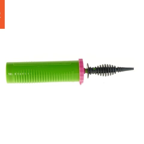 Fodpumpe til oppustelige produkter i blå og gul plast. Pumpen har bølgeformet kammer og fleksibel slange. Der medfølger mundstykker, som kan bruges til forskellige ventiltyper på for eksempel badebassiner, luftmadrasser eller andre oppustelige genstande. Pumpen betjenes med foden, så hænderne kan være fri under brug. Mål: h 10. D 9 c