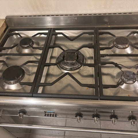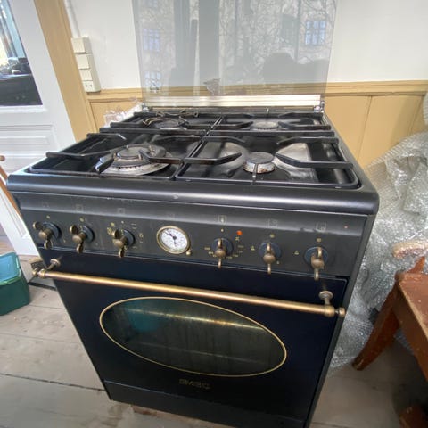 Velholdt SMEG 90 cm gaskomfur/ovn. Alt fungerer som det det skal. Nypris 14.000. Ovn er ikke super rengjort.