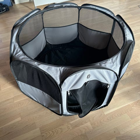 Ollipet hvalpegård modulhegn i hvid plast og metalgitter. Består af 8 kvadratiske paneler, herunder et gitterpanel med låge, samt 4 lukket plastpaneler 50x50cm og samlehjørner. Kan samles som indendørs løbegård eller afskærmning til mindre kæledyr som f.eks. hundehvalp , kattekillinger, kaniner eller gnavere. Fleksibelt system hvor panelerne kan opstilles i forskellige former efter behov.