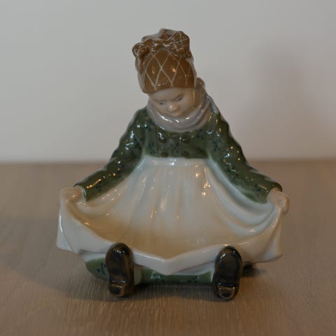 Kongelig dansk figur nummer 1317, strikkende Amager kvinde ca 23 cm høj.