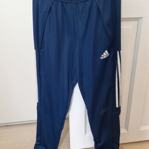 Adidas Arsenal fodboldbukser i unisex størrelse M. Bukserne er bordeaux med gule striber langs siden og Arsenal-klublogo på benet. Elastisk linning med snøre for justerbar pasform. Velegnet til fodbold og anden sport samt træning. Materialeoplysninger fremgår af indvendigt mærke fra Adidas.