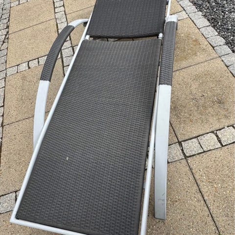 Solvogn i polyrattan med grå hynde. Ryglænet kan justeres, så møblet kan bruges både som ligge- og siddeplads. Understellet er i mørk flet, og hynden er opdelt i tre sektioner, der dækker hele liggefladen. Velegnet til brug på terrasse eller altan.