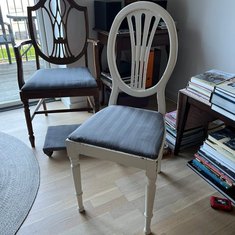Fin men slidt stol i smuk koral farve. Den er lidt vakkelvorn :)