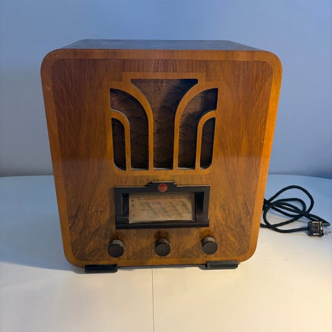 Philips 638A bordradio i træ kabinet fra omkring 1930’erne.