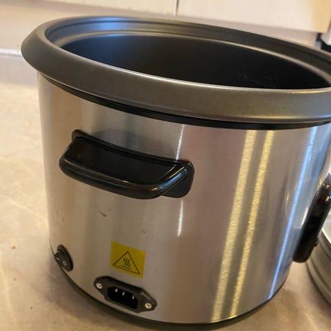 Rigskoger til mikrobølgeovn. Inderskålen er keramisk og den yderste del er i plast. Kun brugt ganske få gange. Indlægssedlen beskriver forholdene mellem ris og vand. Det er super nemt at gå til.