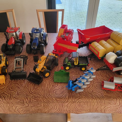 Forskellige modeller af maskiner til de mindre børn. Der er en gravemaskine, læssemaskine, traktor med frontlæsser og tipvogn. De er velegnede til leg både inde og ude.