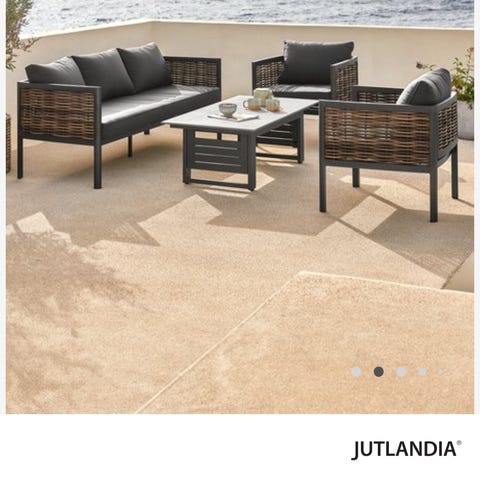 Have loungesæt i flet med hynder. Sættet består af sofa, lænestole og sofabord. Møblerne er udført i fletmateriale med lyse hynder. Nb. Der er et par af hynderne der er gået en smule i syningen men det har ikke betydning for brugen og kan nemt sys. Nypris 20.000 i plantorama.