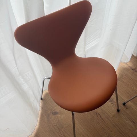 Fritz Hansen Serie 7 stol designet af Arne Jacobsen. Anniversary edition. 5x pale rose, 5x light rose. Med messing ben. Nye og ubeugte. I original indpakning. Nypris 3.600kr pr styk.