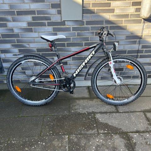 X-Zite børnecykel med 26" hjul. Cyklen har stel i sort med blå og grønne detaljer. Udstyret med fladt styr, håndbremser for og bag samt gearbetjening på styret. Der er monteret støtteben, skærme og reflekser. Velegnet som større børne- eller juniorcykel til hverdag og fritidskørsel.