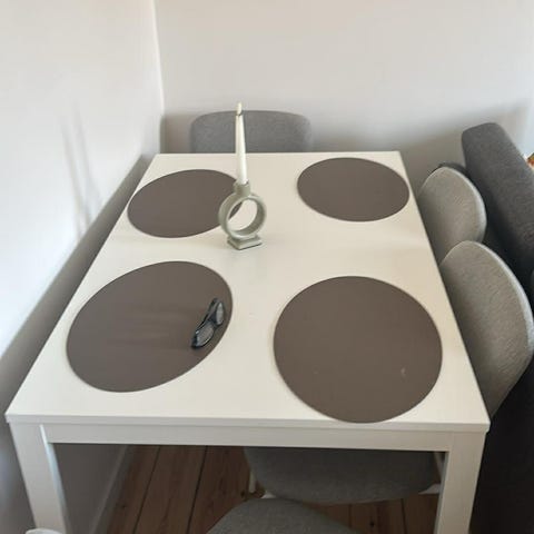 IKEA spisebord med 4 stole og indlægsplade