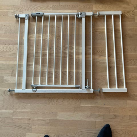 Hauck sikkerhedsgitter i metal i grå farve. Gitteret består af hovedsektion og en forlængerdel samt monteringsbeslag til trykmontering i døråbning eller mellem vægge. Egnet som sikkerhedsgitter til børn eller som afskærmning til kæledyr i hjemmet. Alt tilbehør medfølger.