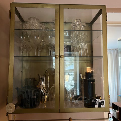 Nordal Downton vægskab (/vitrineskab) i jern og glas. Måler b54 cm x d23 cm x h81 cm. Sælges, da vi har købt et større.