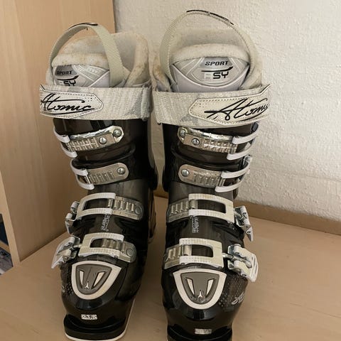 Working but definitely need some fixing up. The boots are well used but have a few more tours in them. There is a small plastic clip that broke off and can be replaced. The boots are still functioning without.
