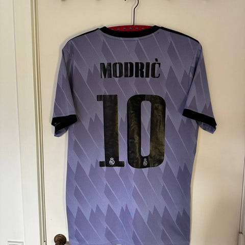 Luka Modric celebration Real Madrid 25/26 hjemmebane trøje. Med Champions league mærker på.