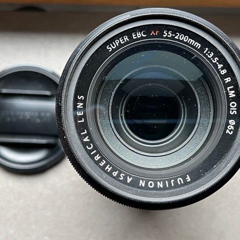Fujifilm XF 56mm f/1.2 R objektiv i sort. Fast teleobjektiv til Fujifilm X-serien med 56mm brændvidde og stor blændeåbning på f/1.2. Objektivet har manuel blændering og autofokus, og fronten er mærket Super EBC XF 56mm f/1.2 R Ø62. Velegnet til portrætter og situationer med lav belysning. Leveres med modlysblænde og frontdæksel som vist på billederne.