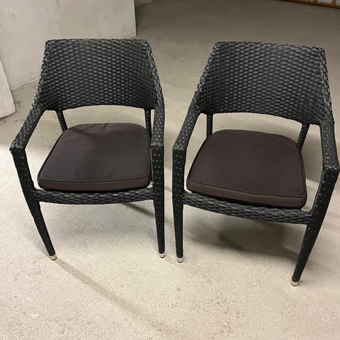 Rundt havebord med glasplade og fletunderstel i sort farve.