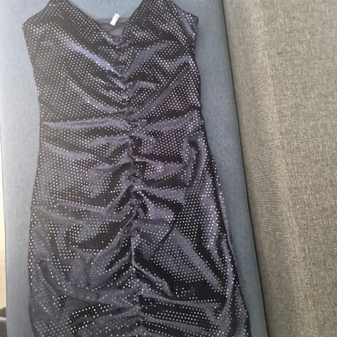 Fineste kjole med glitter/nitter på. Brugt og vasket én gang. Sidder tæt til kroppen.